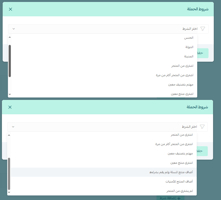 مطلوب إضافة الشروط التالية لقائمة شروط اارسال :