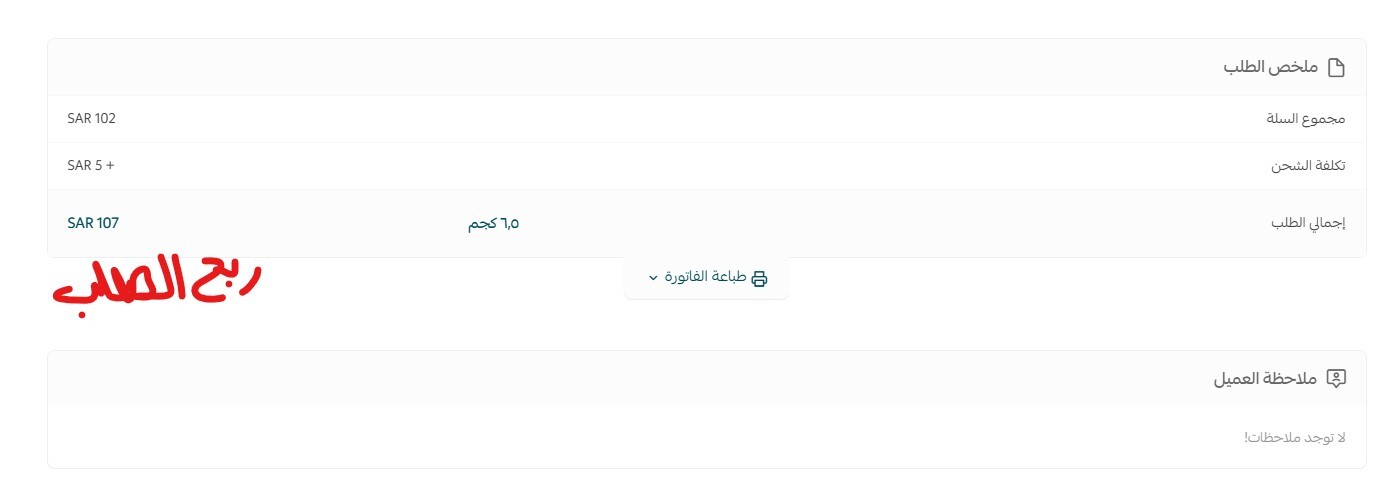 1. عند عرض الطلب (أسفل الطلب في ملخص الطلب)