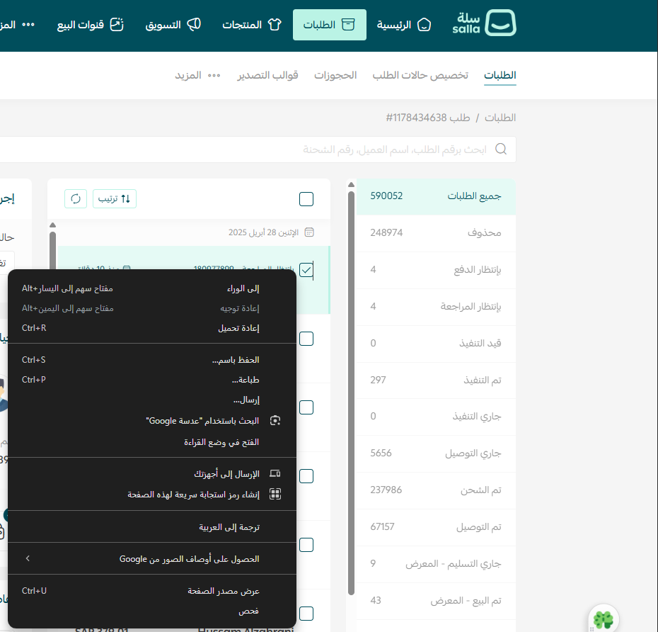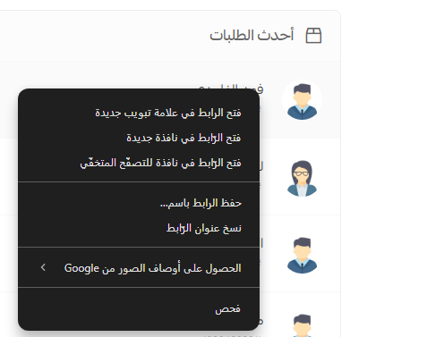 المنصة الجديدة بأدارة الطلبات لا تدعم خاصية فتح الرابط في علامة تبويب جديدة للطلب مثل المنصة القديمة ,