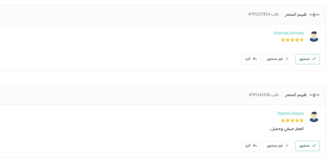 فعلا نحن عندنا العملاء يقيمون المتجر بدال العطر ويكتبون على تقيم المتجر ان العطر جميل وممتاز طيب تقيم المنتج وينه ؟ والشحن وينه ؟