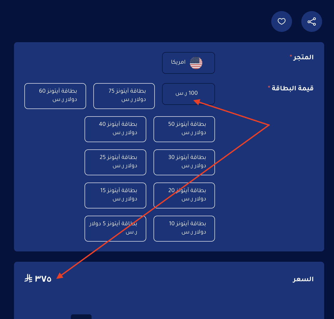 قد يفهم العميل أن قيمة البطاقة هي 100 ر.س بينما السعر هو 375 ر.س، وهذا يؤثر على وضوح المعلومة وثقة العميل بالمتجر.
