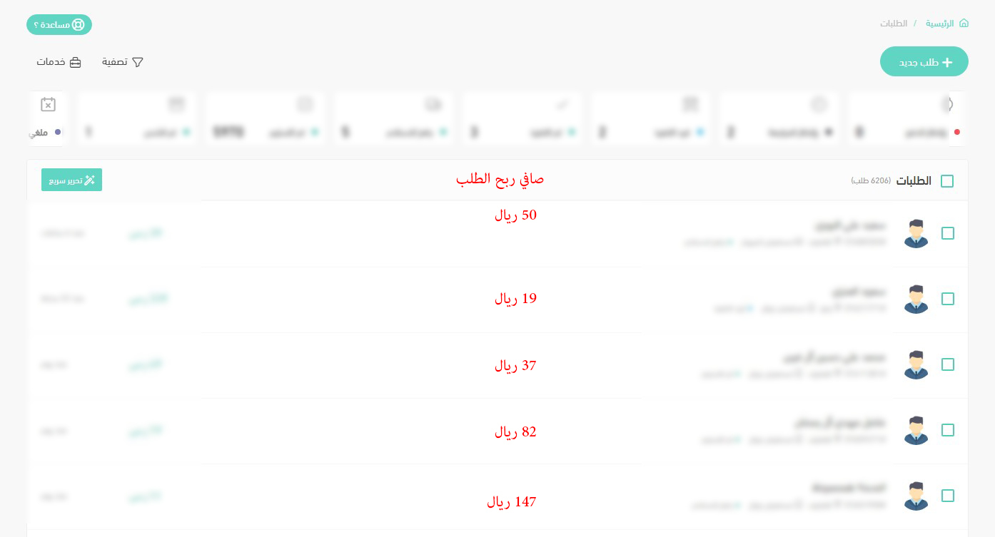 أقترح إضافة الحقول التالية للطلبات بحيث يظهر لنا (صافي الربح لكل طلب) ،،
