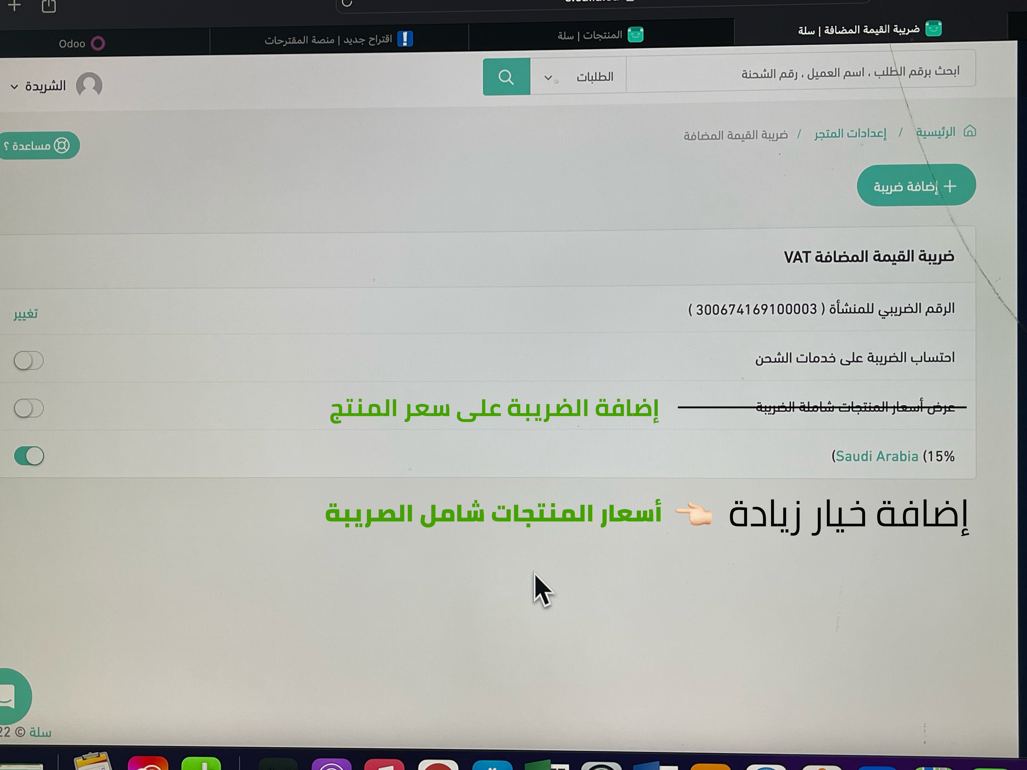 المفترض يكون فيه خيار أن اسعار المنتجات شامل الضريبة ويعرض في صفحة المنتج السعر شامل الضريبة