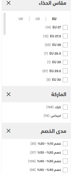 انشاء فلاتر في المتجر لتسهيل تجربة العميل في تصفح المتجر والتوجة مباشرة للاختيار المناسب مثل الصورة المرفقة.
