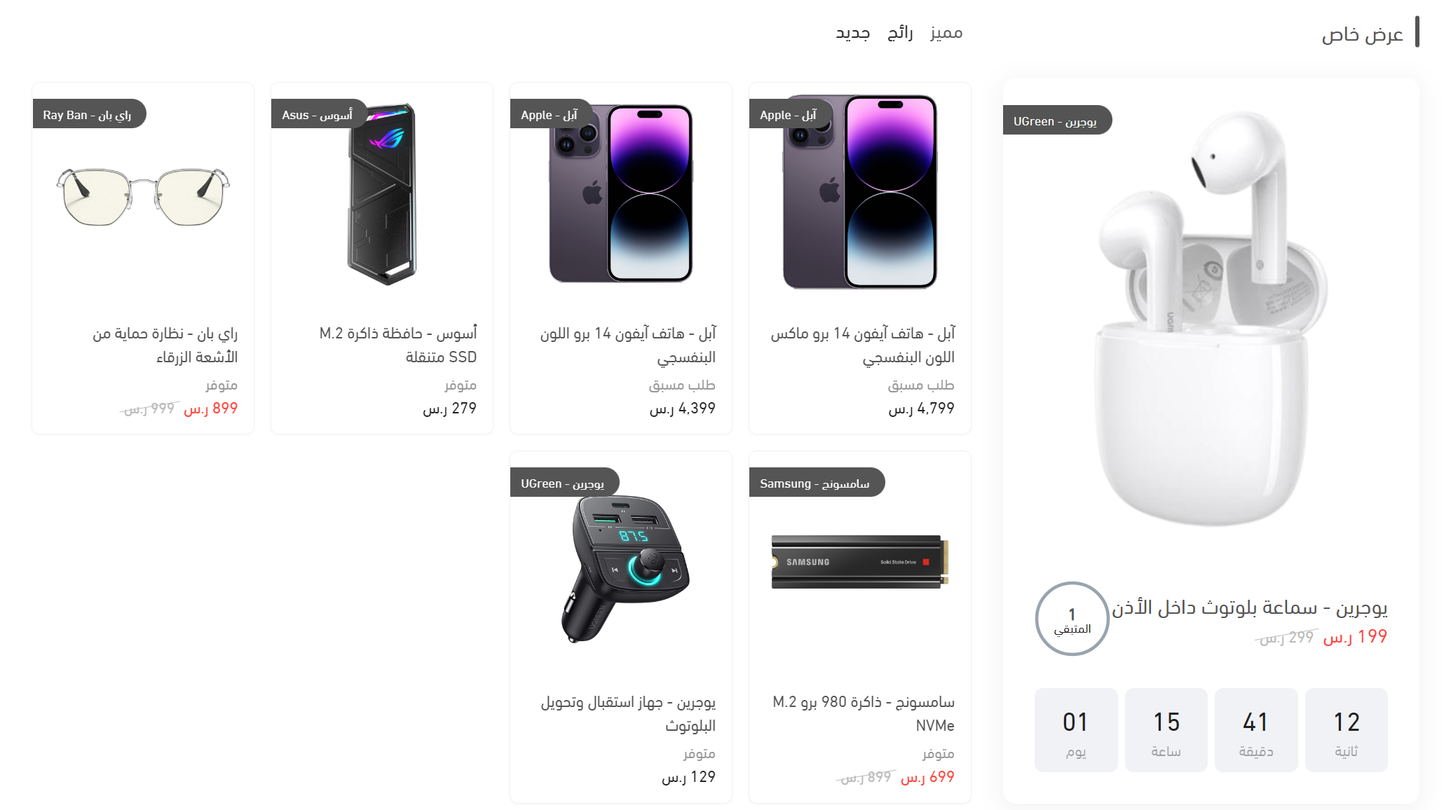 نرجو تحسين عنصر المنتجات المميزة ( عرض خاص + منتجات ) في واجهة المتجر في ثيم نمو كالتالي: