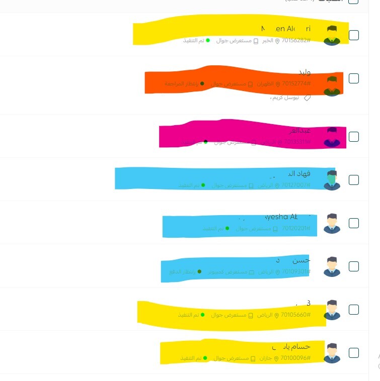 نرجوا العمل على تحسين شاشة الطلبات بحيث يتم تحديد الوان لطلب معين او مجموعة طلبات معينة او طلبات اليوم بلون مختلف بحيث يسهل متابعة الطلبات اليومية او المتأخرة او باختلاف حالات الطلبات .