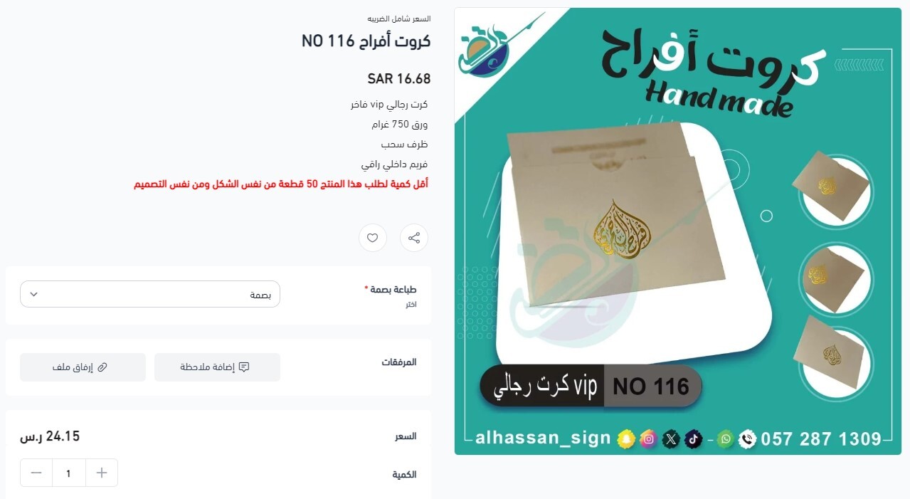 مثلا في كروت الافراح الحد الادنى 50 كرت